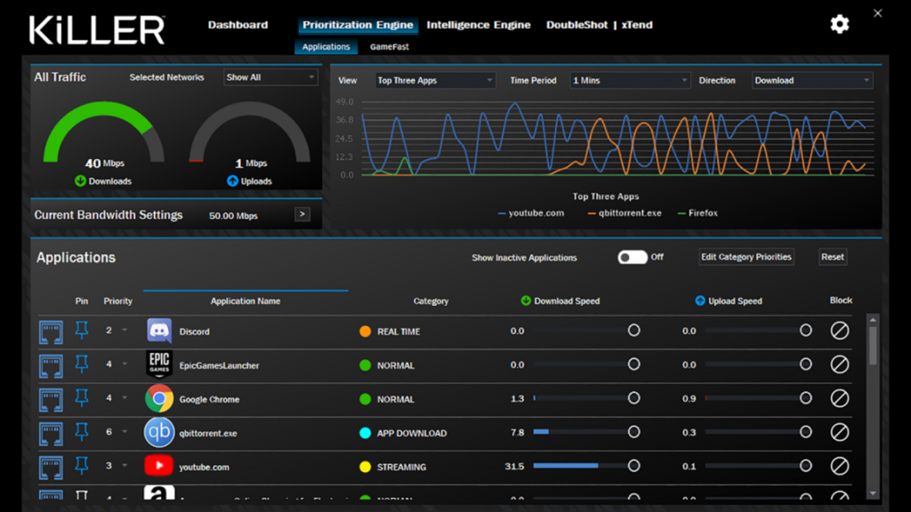 Die Killer Intelligence Engine bietet die Möglichkeit, alle Funktionen der Killer Prioritization Engine, Killer Intelligence Engine und Killer Double Shot Pro zu verwalten und zu steuern, sowie weitere Funktionen, die Killer-Benutzer als sehr nützlich empfinden werden: