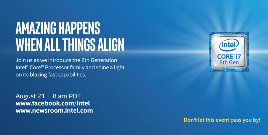 Am 21. August 2017 wird Intel seine 8. Generation der Mainstream-CPUs veröffentlichen.