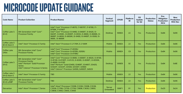 Die neuen Prozessoren der 9. Generation wurden in einem Intel PDF gefunden, das Microcode Update Guidance für seine Prozessoren bietet. Künftig werden sollen die folgenden Modelle erhältlich sein: