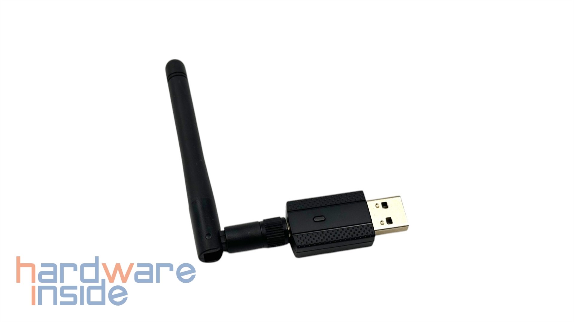 An der Unterseite des Inter-Tech Argus EP-119 WiFi 5 Adapter ist ein weißer Aufdruck zu sehen. Dieser trägt die Modellbezeichnung und die Artikelnummer sowie die Anschrift des Importeurs und wichtige Kennzeichnungen wie das CE-Zeichen. Die Antenne besteht aus einem Mix aus Metall und Kunststoff. Sie wird über einen Drehverschluss mit dem Adapter verbunden. Damit man die Antenne auch ausrichten kann, verfügt diese in der Nähe des Anschlusses über ein Scharnier.