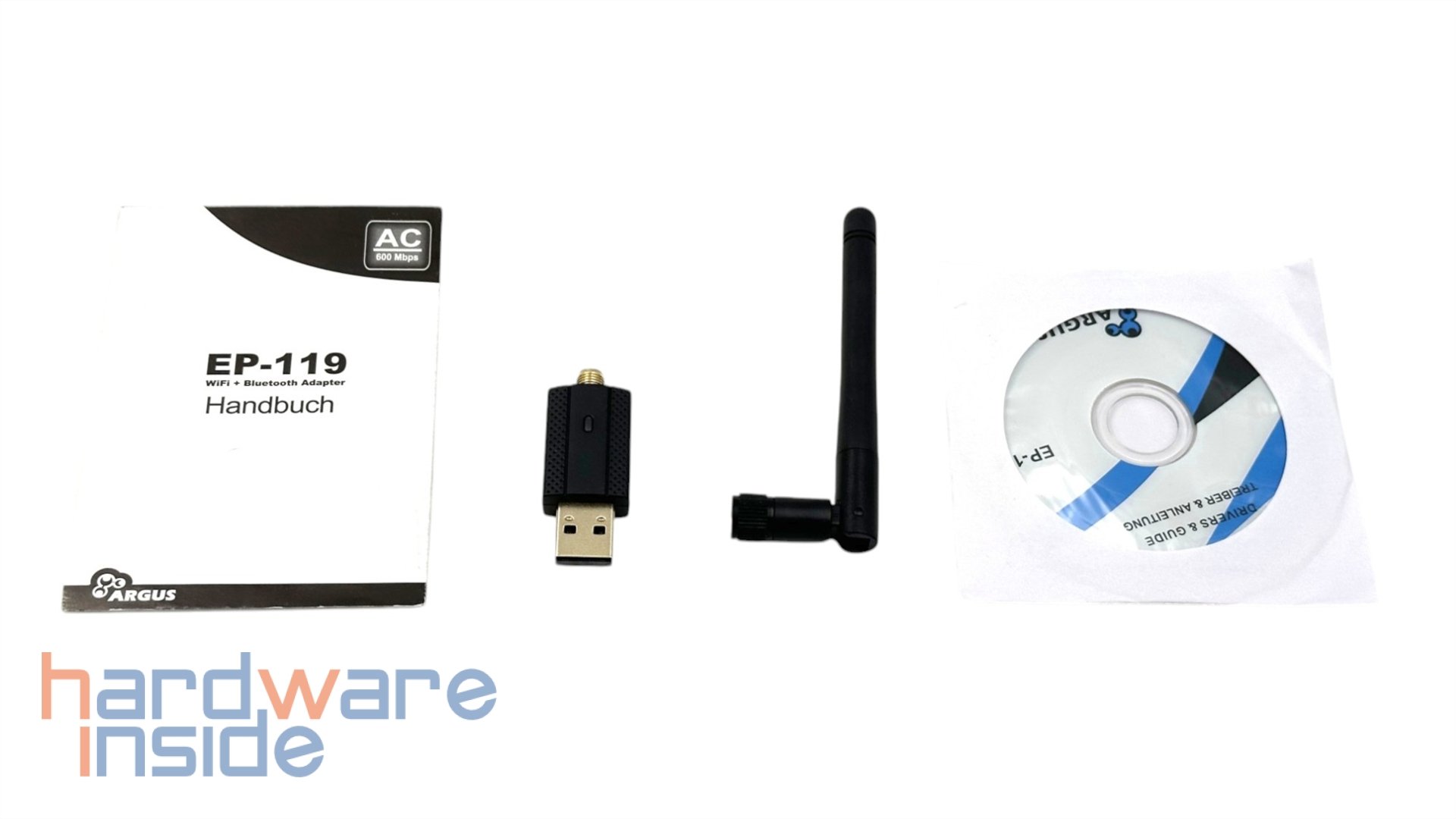 Zuerst befestigen wir die Antenne am Inter-Tech Argus EP-119 WiFi 5 Adapter und stecken diese dann in einen USB-Anschlusses unseres Systems. Mittlerweile verfügen die meisten aktuellen Systeme über kein optisches Laufwerk, weshalb wir mit der mitgelieferten Treiber-CD nicht viel anfangen können. Die Treiber finden wir aber auch zum Download auf der Seite des Herstellers. Die Treiber für Windows teilen sich hierbei in zwei Downloads auf – einer für WLAN und einer für Bluetooth.
