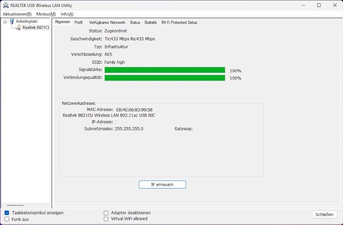 Beim Einstecken stellen wir jedoch fest, dass Windows bereits Treiber für diesen Adapter parat hat. So kommen wir schon kurz nachdem wir den Adapter angeschlossen haben, über WLAN in unser Netzwerk. Die zuvor heruntergeladenen Treiber installieren wir der Vollständigkeit halber aber trotzdem.