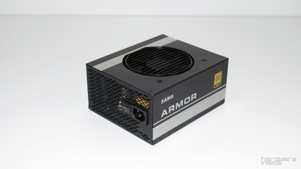 Das SAMA Armor HTX 550 B7 wird in einem schwarzgrauen Karton geliefert. Die Umverpackung ist ausreichend groß, um das Netzteil mit seinen Kabeln sicher zu verstauen. Zwei große Inlett aus Schaumstoff bieten dem Netzteil sowie den Kabelsträngen einen eigenen Platz. Das verhindert neben den Schutztaschen, das Zerkratzen des Gehäuses. Neben der Wattklasse prangt das 80+ Gold links unten. Dies zeigt uns, dass Inter-Tech eine hochwertige Stromversorgung mit hohem Wirkungsgrad bei 50 % Last gewährleistet.