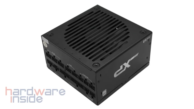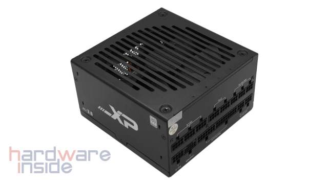 Das Inter-Tech SAMA XPH-1200A ist ein voll modulares ATX-Netzteil in Standardgröße. Zur effektiven Kühlung des Netzteils sind auf der Oberseite zahlreiche Lüftungsschlitze ausgespart, im Inneren kommt ein 140-mm-Lüfter zum Einsatz. Das Design des Netzteils ist insgesamt relativ schlicht, auf zwei der Seitenflächen befindet sich jeweils der Schriftzug „XP“ sowie ein 80PLUS Platinum Logo und ein Hinweis auf den ATX 3.0 Standard, ansonsten sind die schwarzen Flächen des Netzteils unbedruckt.