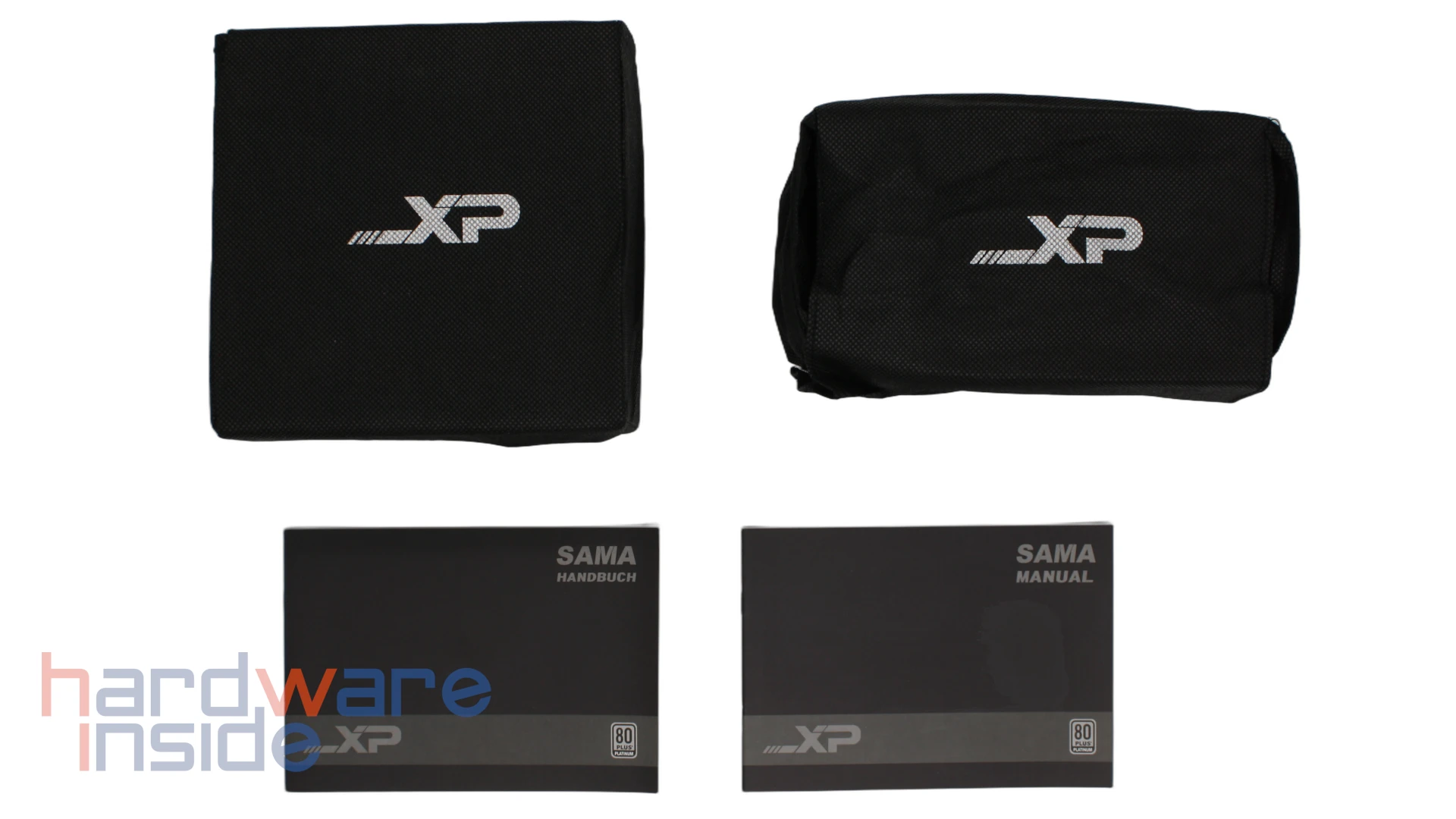 In der Verpackung des Inter-Tech SAMA XPH-1200A befinden sich neben dem Netzteil und den Modulkabeln noch ein paar Kabelbinder aus Stoff, ein Kaltgerätekabel und eine Bedienungsanleitung.