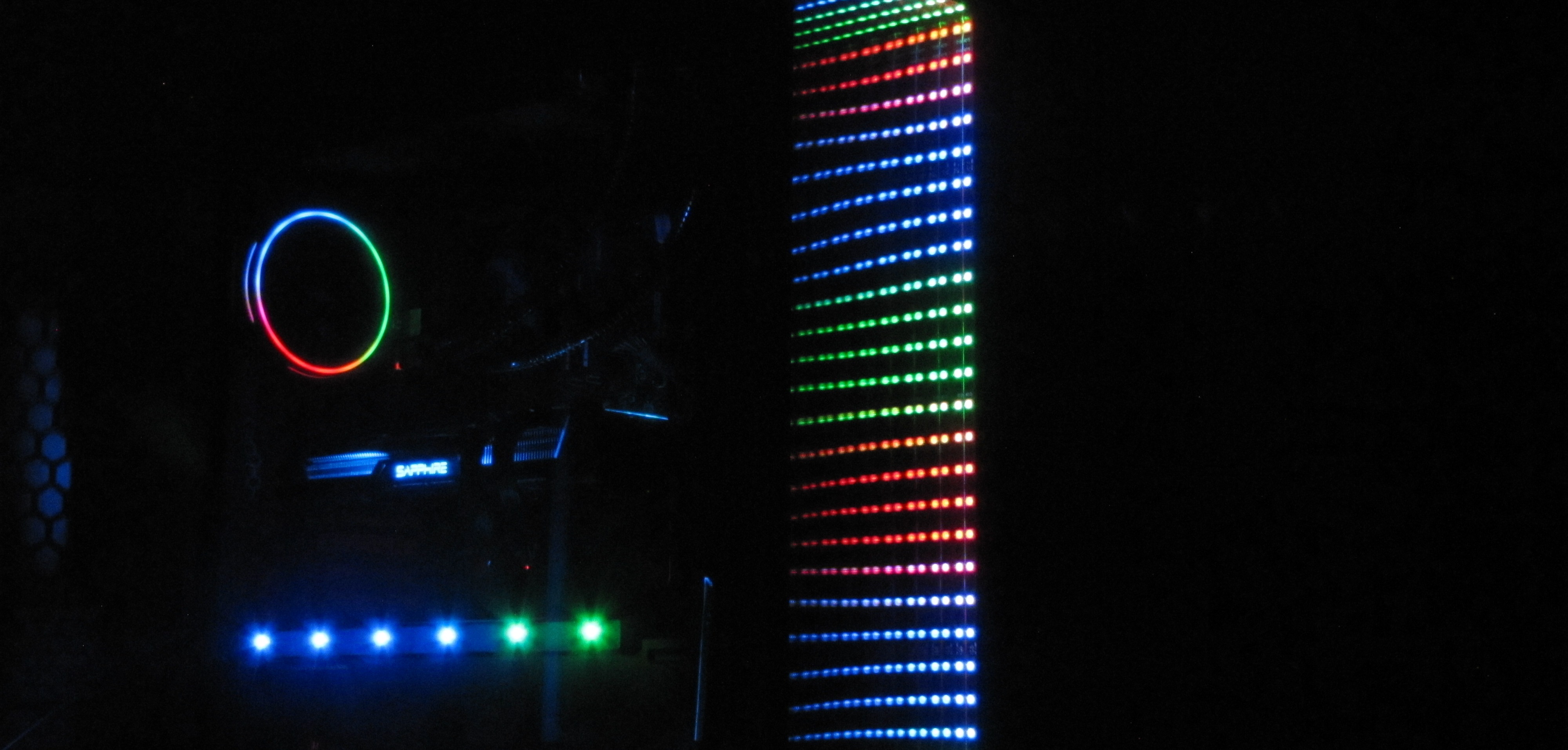 Der Innenraum zeigt sich zweigeteilt – einmal der größere Part für das Mainboard und die „sichtbaren“ Hardwarekomponenten und zum anderen die Netzteilabdeckung, die bis auf einen Ausschnitt des Netzteiles alle Kabel und HDDs versteckt. Anders als andere Netzteilabdeckungen verfügt diese allerdings noch über 6 RBG LEDs, die mit den Lüftern und dem Infinity Mirror synchronisiert werden können.