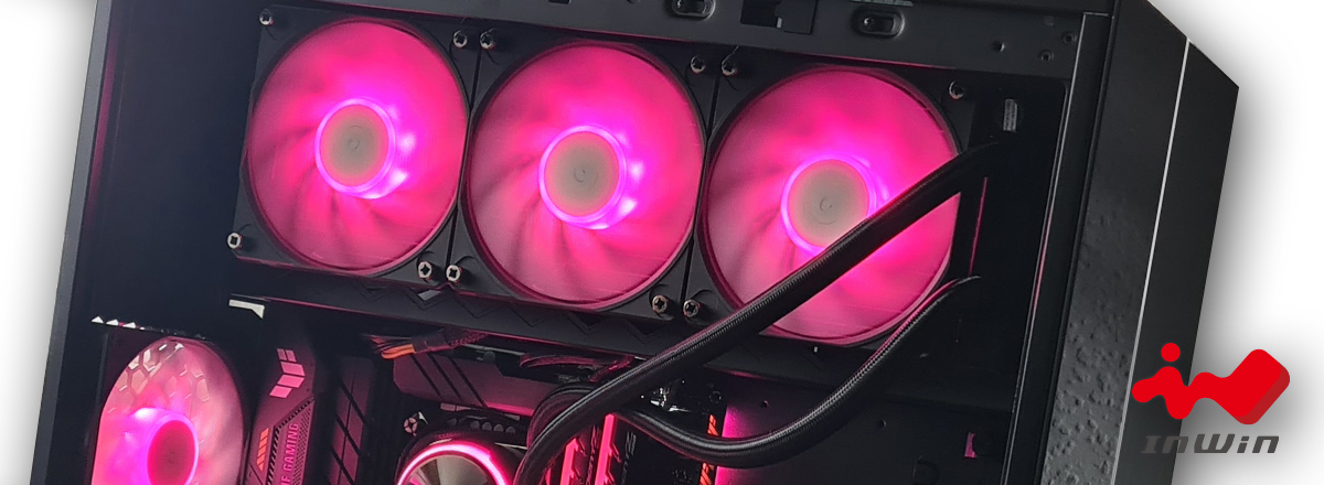 Zusätzlich haben wir noch drei InWin Luna AL120 ARGB-Lüfter aus einem separat erhältlichen Triplepack, dass uns zur Verfügung gestellt wurde, auf unserer 360 mm All-in-One Wasserkühlung verbaut, um ein einheitliches Bild zu erhalten.