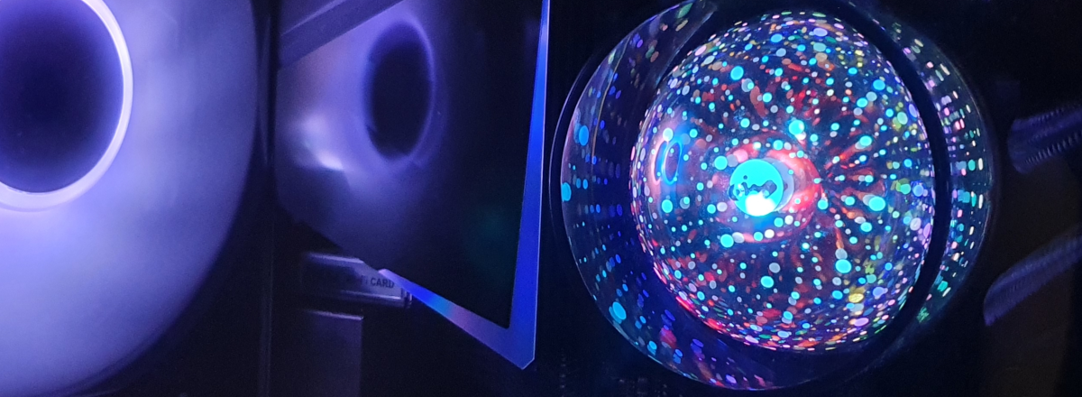 Nach dem Montieren der Lüfter auf den Radiator (Pfeile in Richtung Radiator) kann die komplette AIO im Gehäuse platziert werden. In diesem Fall ist es das passende InWin – Nebula N515. Das mit Magneten befestigte Filtergitter wird entfernt und es kommt eine mit vier Schrauben befestigte Lüfterschablone zum Vorschein. Auch diese wird entfernt woraufhin der Radiator mit der Metallschablone verbunden wird. Die Konstruktion wird wieder in das Gehäuse montiert. Die Stecker der Luna Lüfter werden mit dem beigelegten Daisy Chaining Kabel verbunden. Hierbei ist der One-Click-Controller für alle Farbeffekte nutzbar. Wir steuern die Beleuchtung jedoch direkt über das Mainboard um die Peripherie zu synchronisieren.