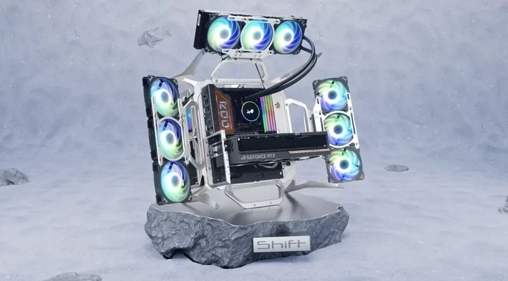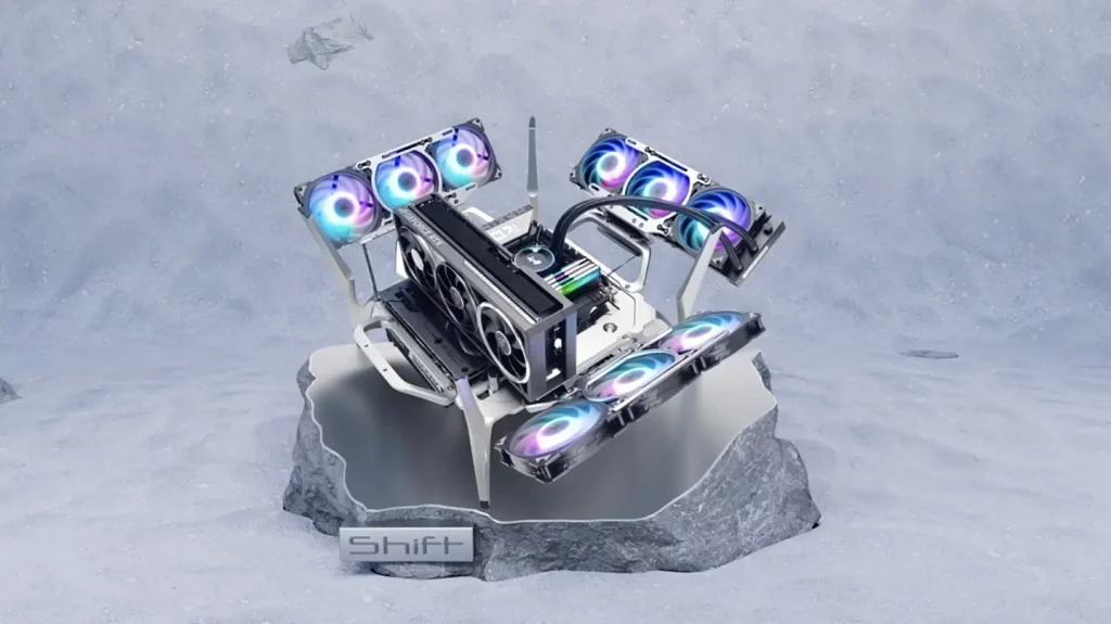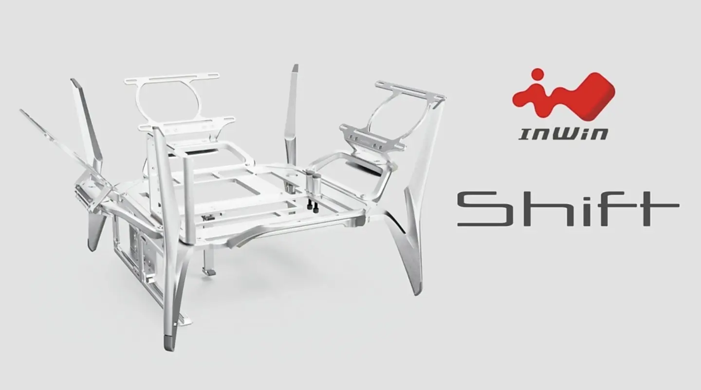 Mit dem SHIFT präsentiert InWin ein neues Open-Frame-Chassis der iBuildiShare-Reihe. Das Design ist von Flugzeugstrukturen inspiriert und zeichnet sich durch einen markanten Aluminiumrahmen mit verstellbaren „Flügeln“ aus – ein Look zwischen Drohne und Raumschiff.