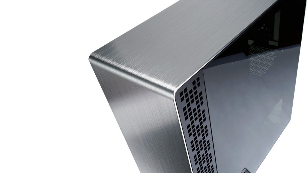 Die Ästhetik des neuen 905 Midi-Towers wird durch seinen rigorosen Montageprozess erreicht. Ein einziges Stück gebürstetes Aluminium umschließt die Außenseite des InWin 905. Die Seitenwände aus gehärtetem Glas sind dezent getönt und rücken alle adressierbaren RGB-Komponenten ins Blickfeld. Das vordere LED-Display ist umrissen von 15 präzisen Lasercuts.