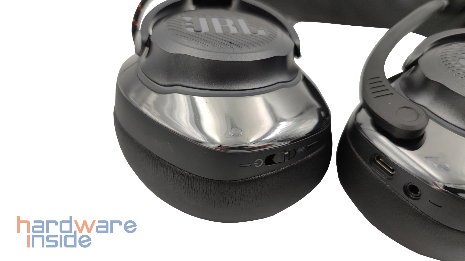 Das JBL Quantum 810 Wireless Headset verfügt schon durch seine Bauart über eine gute passive Geräuschunterdrückung. Zusätzlich hat JBL dem Headset noch eine aktive Geräuschunterdrückung spendiert. Dis funktioniert in der Praxis sehr gut, so wird zum Beispiel ein auf Zimmerlautstärke laufender Fernseher nahezu ausgeblendet. Weil das Headset schon ohne ANC so gut abschirmt, gibt es die Talk Through Funktion. Mit dieser Funktion werden die nach außen gerichteten Mikrofone aktiviert, um Geräusche oder den Gesprächspartner so zu verstärken. Das funktioniert in der Praxis recht gut, ist aber mit einem leisen Rauschen verbunden.