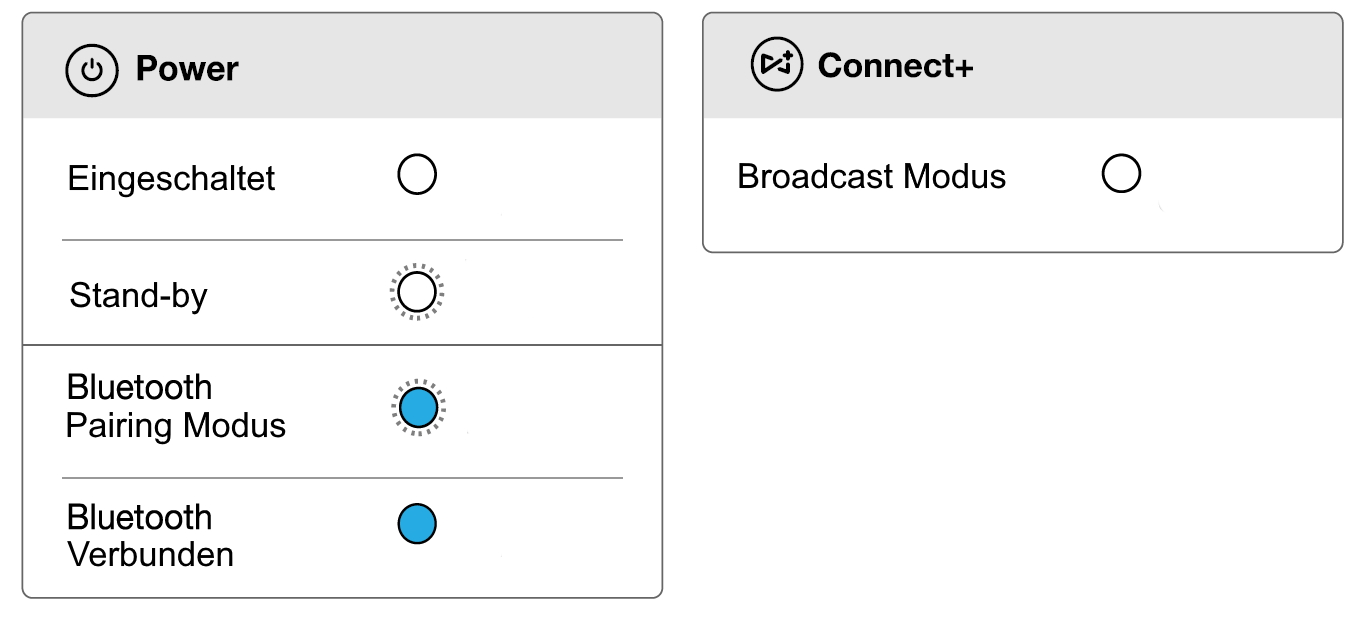 - JBL Connect+ (Verbindet mehr als 100 einzelne JBL Connect+-kompatible Lautsprecher miteinander.)