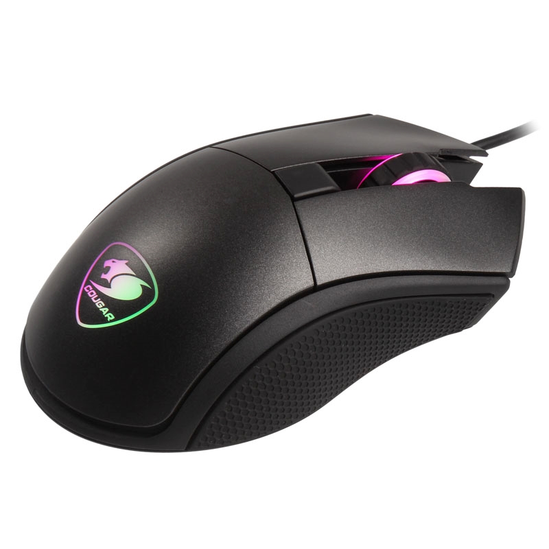 Egal in welcher Auflösung oder Geschwindigkeit das aktuelle Spiel läuft, die Cougar Revenger S bietet stets die optimale und exakt arbeitende DPI, die sich einfach per Tasten an der Maus zwischen 100 und 12.000 einstellen lässt. Hinzu kommt die sagenhaft schnelle Signalrate von maximal 2.000 Hz, gewährleistet durch Pixarts starken PMW3360-Sensor. Alle sechs Tasten sind programmierbar. Die speziell für Rechtshänder entwickelte schlanke Maus hat an jeder Seite ein Inlay aus Gummi für einen optimalen Griff und dazu noch eine schicke RGB-Beleuchtung. In Verbindung mit dem sehr hochwertigen Gehäuse und der verbauten Technik wie Omron-Switches hat Cougar hier ein absolut ernstzunehmendes Werkzeug für Gewinner geschaffen!