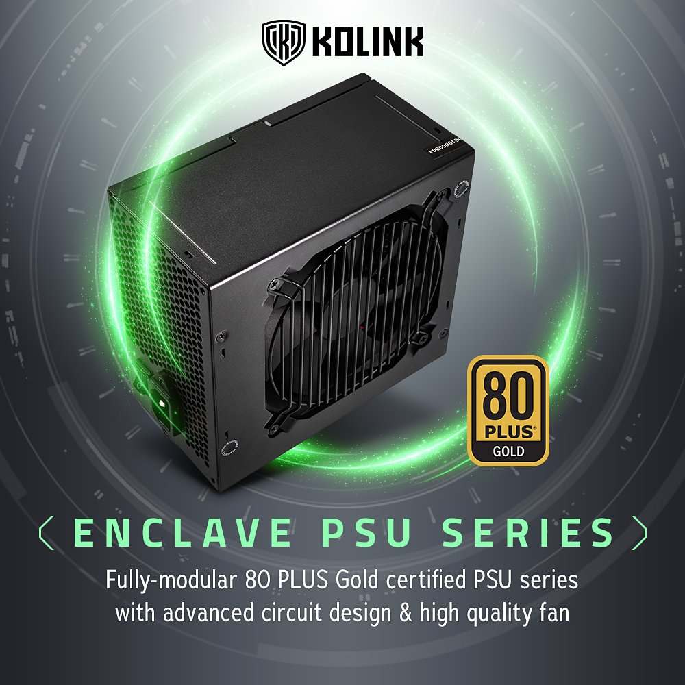 Berlin, 02.09.2019 – Der für seine preiswerten Produkte bekannte Hersteller Kolink präsentiert die neue Enclave-Serie, leistungsstarke Netzteile mit 80 PLUS Gold Zertifizierung. Die stabile Stromversorgung der starken 12-V-Single-Rail ist durch hochwertige Bauteile und einen fortschrittlichen Aufbau möglich. Außerdem bietet die Netzteil-Serie vollmodulares Kabelmanagement sowie einen flüsterleisen 120-mm-Lüfter-Lüfter. Trotz der modernen Features ist die Kolink Enclave-Reihe sehr preiswert. Jetzt bei Caseking.