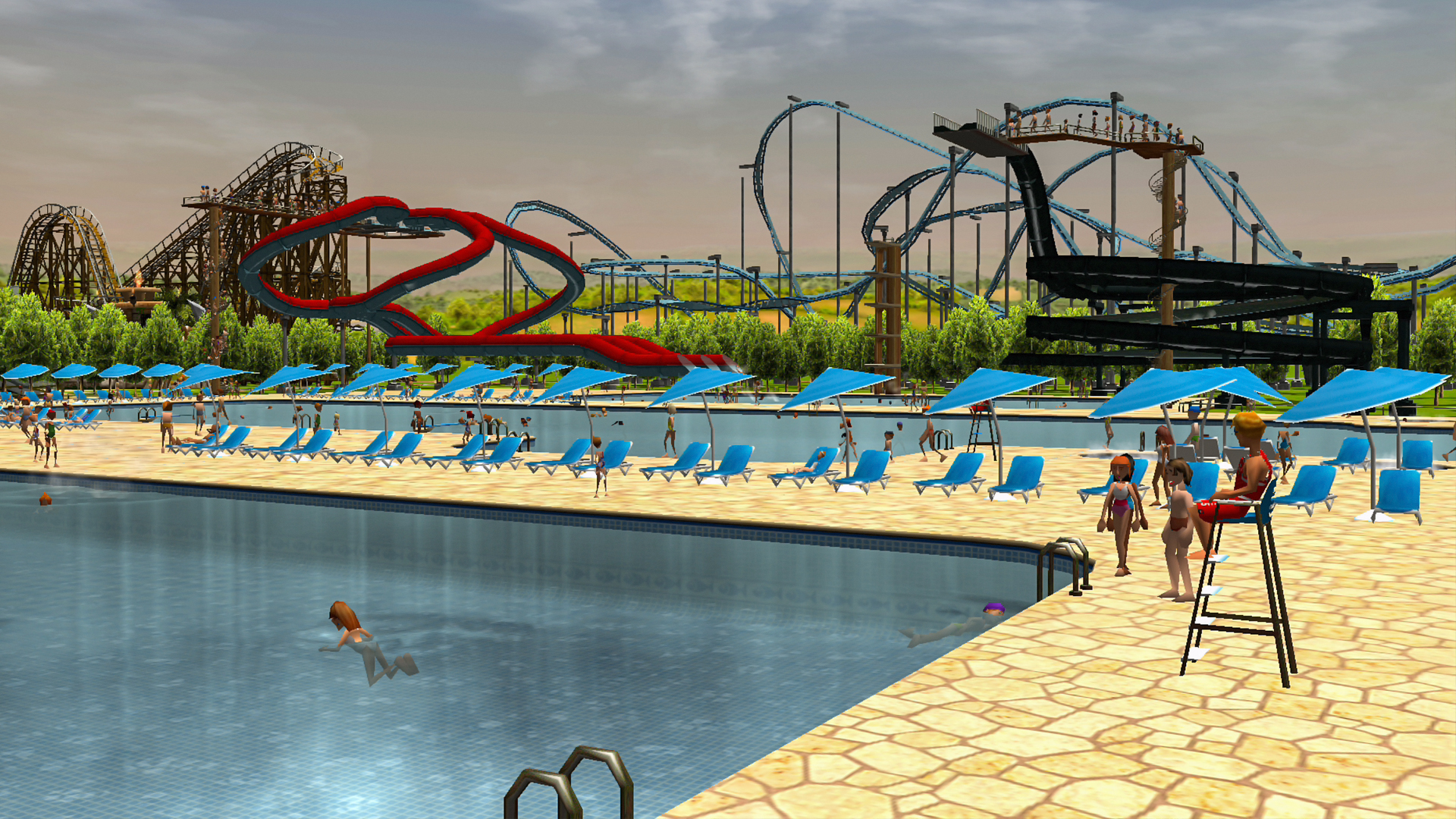 Du kannst einen komplett eigenen Freizeitpark nach deinen Wünschen erstellen und betreiben.