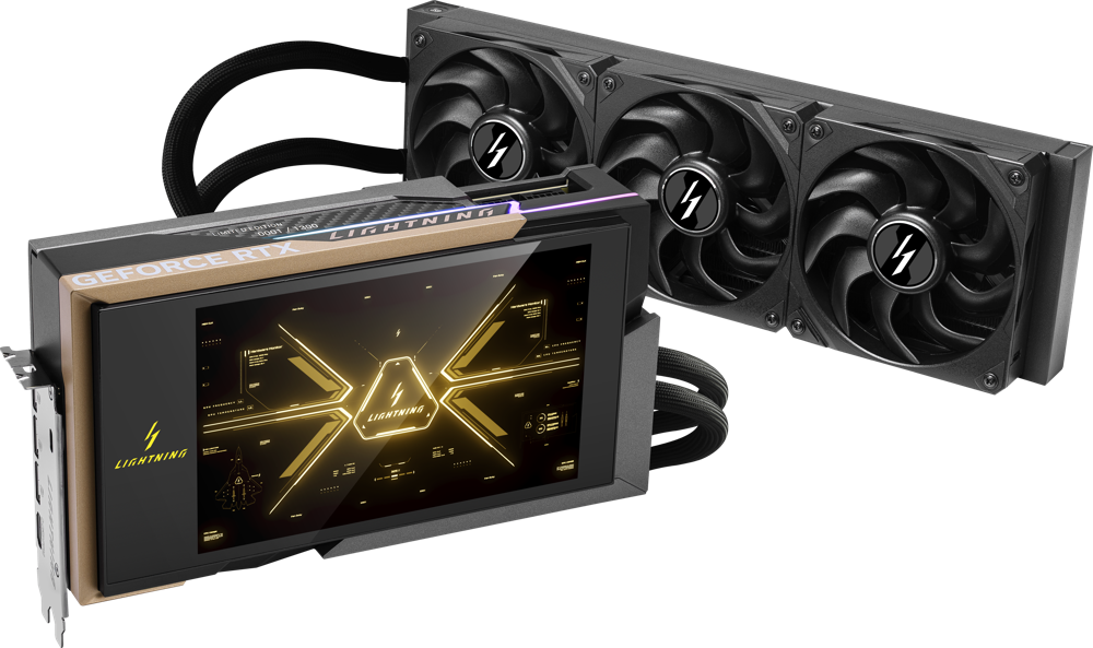 Im Inneren arbeitet ein speziell für Overclocking entwickeltes Custom-PCB mit 3-oz-Kupferschicht, Premium-Komponenten und Dual-BIOS. Ergänzt wird das Setup durch den webbasierten Lightning Hub sowie die mobile App Lightning Overdrive für Echtzeit-Monitoring und Feintuning.