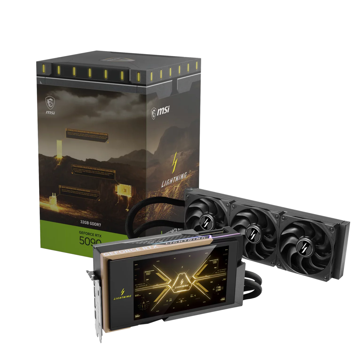 Ein vollständig neu entwickeltes Flüssigkeitskühlsystem sorgt für stabile Temperaturen auch unter Volllast. Dazu gehören eine Full-Cover Coldplate, eine Hochdruckpumpe der nächsten Generation, ein Hybrid-Fin-Radiator sowie der exklusive Lightning Fan. Das Zusammenspiel dieser Komponenten ermöglicht eine außergewöhnliche thermische Effizienz und hohe Laufruhe.