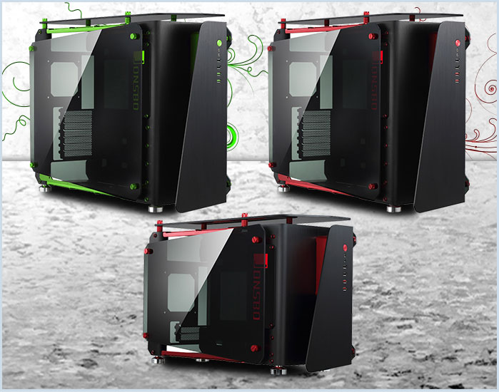 Erstmalig bei Jonsbo bietet das VR1 ein neues, elementares Design-Element: Bei dem kompakten Mini-ITX Gehäuse können Grafikkarten vertikal installiert werden. So ist es möglich, in dem Mini-Tower auch entsprechend lange High-End Grafikkarten zu montieren. Der Anschluss der Peripherie erfolgt unterhalb des Deckels, die Kabel werden dazu durch eine Öffnung nach hinten aus dem Gehäuse geführt. Die Seitenteile sind aus 5 mm starkem „tempered glass“ gefertigt. Zusammen mit dem Aluminium-Chassis verleiht es dem Gehäuse ein besonders hochwertiges Aussehen, wodurch es sich unter anderem idealerweise als Basis für einen Wohnzimmer-Rechner eignet.