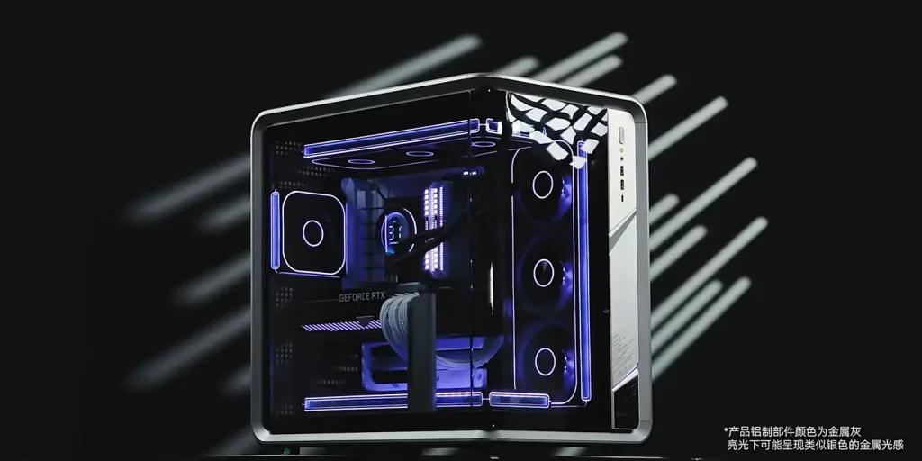 Mit dem BO400 CG bringt Jonsbo eine Neuauflage seines BO400-Gehäuses. Während das Original bereits durch einen robusten Aluminiumrahmen und eine integrierte GPU-Halterung überzeugte, setzt das CG-Modell vor allem optisch neue Maßstäbe: Die linke Frontsäule entfällt und wird durch geschwungenes Glas ersetzt, das Front und Seitenfenster zu einer nahezu durchgehenden Panorama-Ansicht verbindet – perfekt, um Hardware, Beleuchtung oder Wasserkühlung eindrucksvoll in Szene zu setzen.