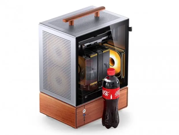 Das JONSBO T7 ist ein kompaktes Mini-Tower-PC-Gehäuse, das für MicroATX- und Mini-ITX-Systeme konzipiert wurde. Es zeichnet sich durch ein ungewöhnliches, invertiertes Zwei-Kammer-Design aus, bei dem das Netzteil (PSU) von den Hauptkomponenten getrennt ist – dies verbessert sowohl die Luftzirkulation als auch das Kabelmanagement. Ein besonderes Merkmal des T7 ist das Holzpaneel an der PSU-Kammer im unteren Bereich, das dem Gehäuse eine außergewöhnliche Ästhetik verleiht und sich von den üblichen Metall- oder Kunststoffoberflächen abhebt.