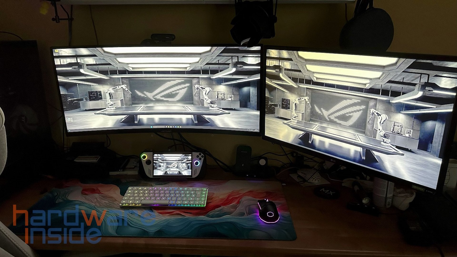 Aber wozu schließen wir nun eine ASUS ROG Ally an zwei große Monitore an? Gedacht ist das Setup für Kleinigkeiten wie das Arbeiten im Office, das Surfen im Netz oder kleine Casual Games. Top Titel, die auf der ASUS ROG Ally Z1 Extreme selbst noch gut laufen, sind auf dem Hauptbildschirm in der Ultrawide-Auflösung von 3.440 x 1.440 Pixeln nur bedingt oder gar nicht spielbar. So bildet dieses Setup aber eine gute, stationäre Möglichkeit, mit dem Handheld zu arbeiten.