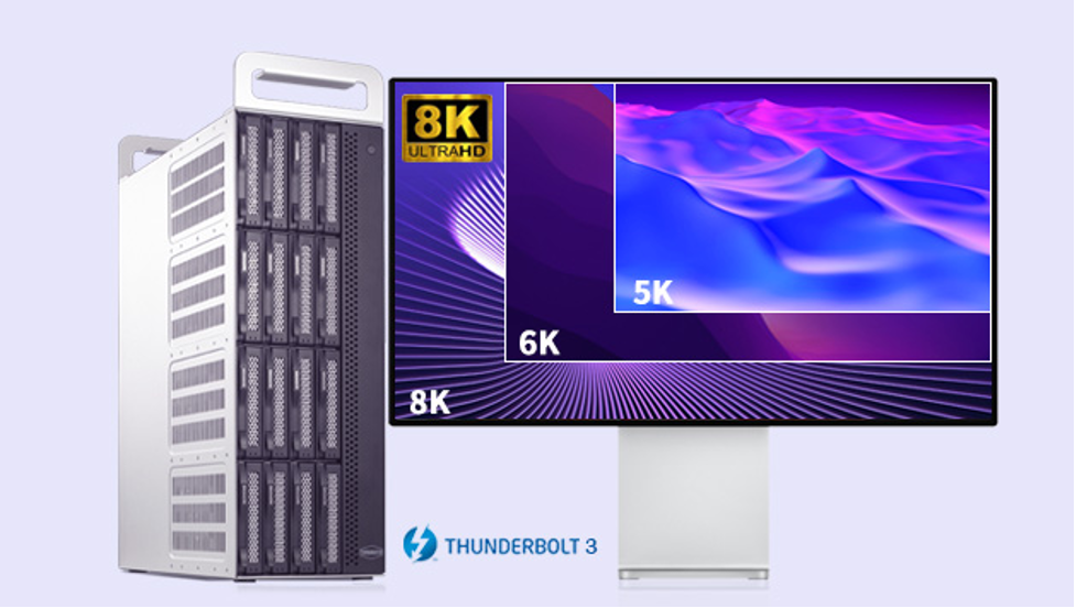 Die minimalen Anforderungen an Low-Latency und nicht lineare Videobearbeitung sind nicht einfach zu erreichen. Es können Hänger und Bildfehler entstehen, welche den Arbeitsfluss massiv stören. Mit einer 40 Gbps Anbindung können Benutzer mehrere Stunden Material schnell von einem Blackmagic® Gerät zu Adobe® Premiere Pro transferieren. In Zusammenarbeit mit unkomprimierten 10-Bit und 12-Bit Videos, können Anwender ProRes 422 (HQ), ProRes 4444 (XQ) und andere Datenströme bearbeiten. Miniatur- und Vorschaubilder rendern ist deutlich reaktionsfreudiger bei großen Dateien oder vielen HD-Clips.