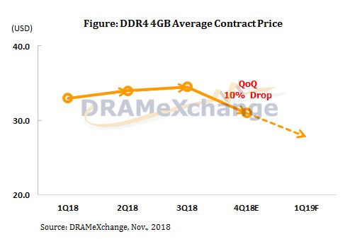 Der Bericht zeigt, dass die Preise für 4-GB-PC-DRAM-Module auf dem Markt im Vergleich zum Vorquartal bereits um 10,14% gefallen waren (34,5 US-Dollar im 3. Quartal 18 auf derzeit 31 US-Dollar). Dies ist ein Zeichen für anhaltende Rückgänge. Die Preise für 8-GB-DRAM-Module sind um 10,29% gesunken, was auf einen erhöhten Bestand dieser hinweist.