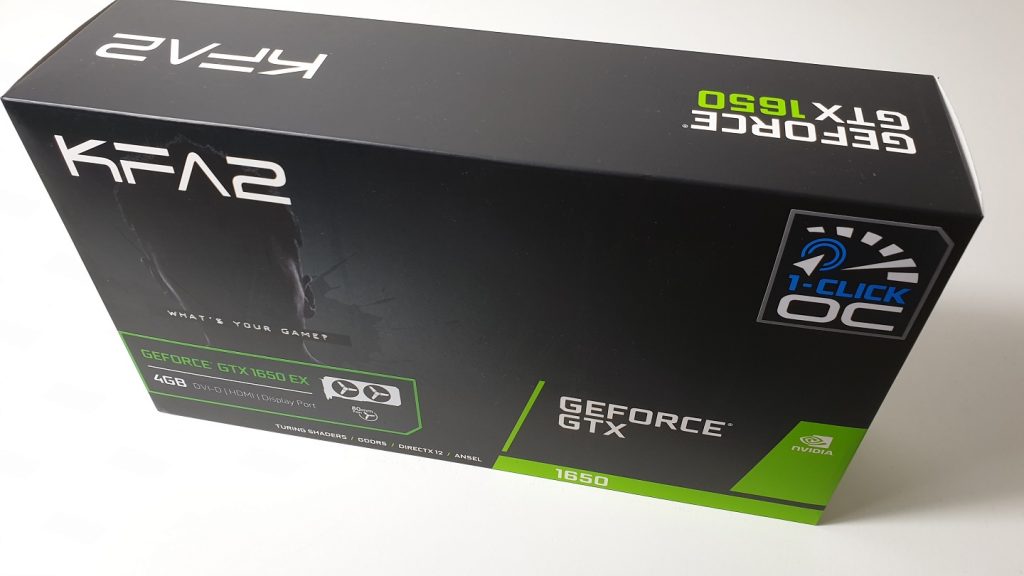 Die Verpackung der KFA2 GeForce GTX 1650 ist recht klein, nichtsdestotrotz finden wir alle wichtigen Infos auf dieser. ![]()