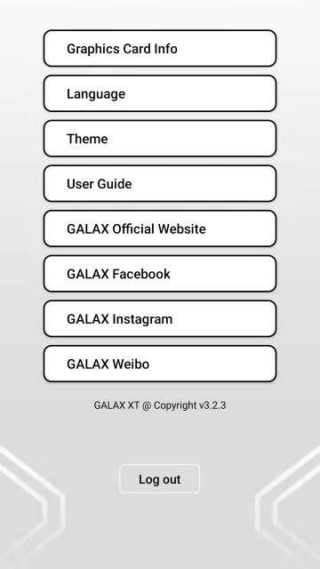 Als Begleitsoftware zu den KFA2-Grafikkarten bietet der Hersteller die Software „Xtreme Tuner“ an. Die Optik erinnert stark an die Geschwindigkeitsanzeigen eines Auto-Cockpits. Zwei Tachometer zeigen links die aktuelle Geschwindigkeit des Grafikprozessors und rechts und die Geschwindigkeit des Speichers an. Unter den Anzeigen wird die aktuelle Temperatur und die aktuelle Lüftergeschwindigkeit angezeigt. Das Element zwischen den beiden Anzeigen präsentiert in der „Info“-Ansicht einige technische Details zur Grafikkarte. Neben den aktuellen Basis- und Boost-Takten finden sich hier auch Informationen über den aktuell verwendeten Treiber, sowie die BIOS-Version der Grafikkarte. Im oberen Bereich befinden sich Schaltflächen für weitere Ansichten.