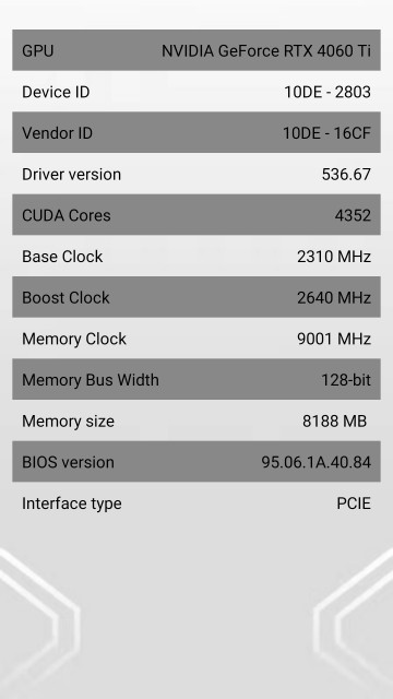 | API-Unterstützung | DirectX 12 Ultimate (12_2) CUDA 8.9 Vulkan 1.3 OpenCL 3.0 OpenGL 4.6 Shader Model 6.7 |