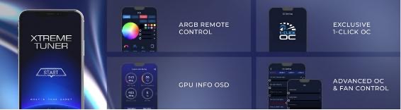 Ein Highlight der neuen Serie ist die umfassende Integration der Xtreme Tuner App, die eine kabellose Anpassung der Grafikkartenfunktionen erlaubt – auch von unterwegs. Über Smartphone oder Tablet lassen sich ARGB-Lichteffekte individuell gestalten, die Lüftergeschwindigkeit optimieren oder per 1-Click-OC mit einem Fingertipp übertakten. Wer tiefer einsteigen will, findet in der App auch erweiterte Overclocking-Optionen sowie ein praktisches On-Screen-Display zur Echtzeitüberwachung zentraler GPU-Daten.
