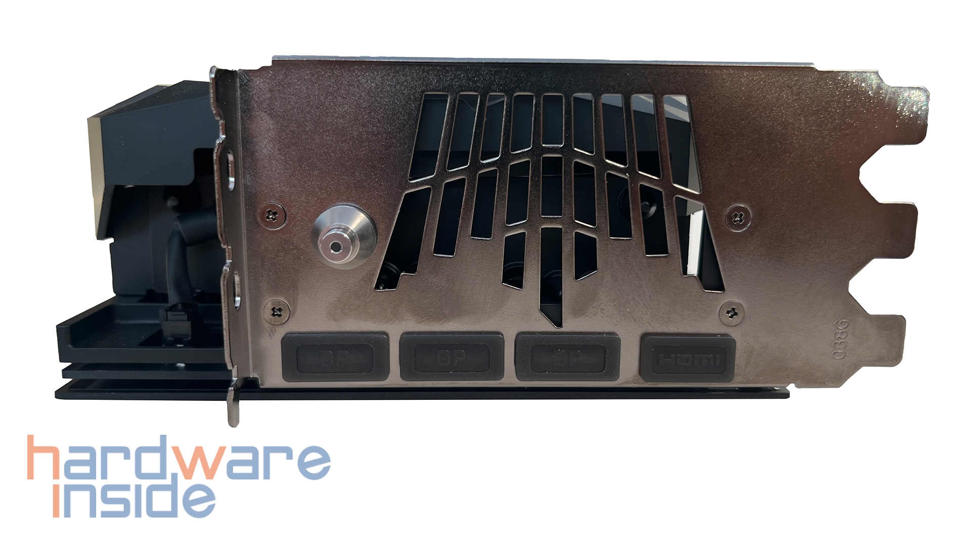 Die Anordnung der Ports ist klassisch horizontal, wobei KFA2 auf eine klare Struktur setzt und keine unnötigen Öffnungen zwischen den Anschlüssen verschwendet. Stattdessen ist die Slotblende mit zusätzlichen Lüftungsschlitzen versehen, durch die ein Teil der warmen Luft nach außen abgeführt wird.