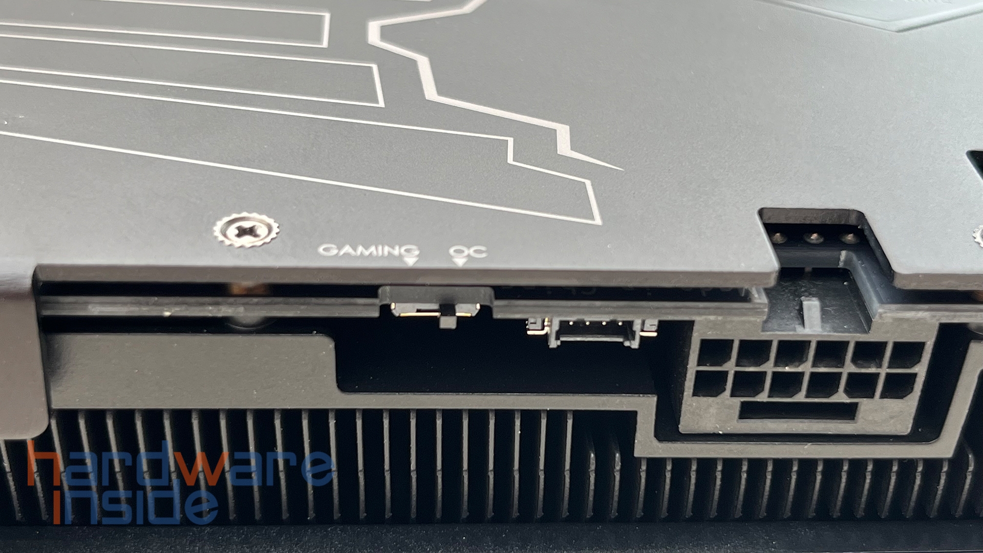 Ein besonderes Schmankerl ist das Dual-BIOS-System. Mit einem kleinen Schalter auf dem PCB lässt sich zwischen zwei Profilen wechseln: dem „Gaming“-Modus und dem aggressiveren OC-BIOS. Während im Gaming-Modus die Lüfterkennlinie sanfter ausfällt und die Karte auf einen leisen Betrieb optimiert ist, legt der OC-Modus die Priorität auf maximale Performance. Damit richtet sich die Karte gleichermaßen an Nutzer, die Wert auf Ruhe legen, und an Overclocker, die jeden Megahertz ausloten wollen.