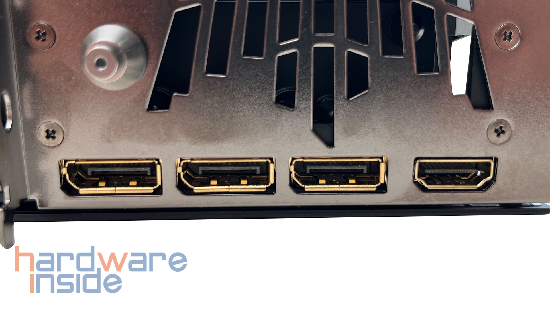 Auf der Slotblende der KFA2 GeForce RTX 5070 Ti Hall of Fame Black Edition zeigt sich, dass KFA2 die Karte konsequent für moderne Displays und High-End-Setups ausgelegt hat. Insgesamt stehen vier Ausgänge zur Verfügung: