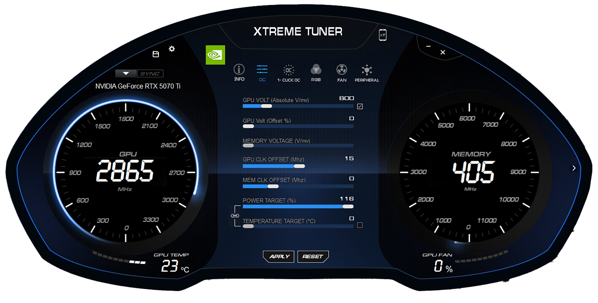Die XTREME TUNER Software von KFA2 ist das zentrale Werkzeug, um die Hall of Fame Black Edition umfassend zu kontrollieren und zu optimieren. Schon beim Start fällt die klare, übersichtliche Benutzeroberfläche auf, die auch Einsteiger schnell durch die verschiedenen Menüs führt. Die Software bietet alle wichtigen Funktionen: Übertaktung von GPU- und Speicher-Takt, Anpassung der Lüfterkurve, Überwachung von Temperaturen und Spannungen sowie die Auswahl zwischen den Dual-BIOS-Profilen. Besonders praktisch ist die Möglichkeit, Lüfterprofile individuell anzupassen. Über eine Kurve lassen sich Drehzahlbereiche exakt festlegen, sodass man je nach Anwendung zwischen leisem Betrieb und maximaler Kühlleistung wechseln kann. Auch das Power-Limit und der GPU-Boost lassen sich fein justieren – ideal für Overclocker, die das Maximum aus der Karte herausholen wollen. Die Software zeigt zudem in Echtzeit Temperaturen, Taktraten und Stromverbrauch an, sodass Nutzer sofort sehen, wie sich Veränderungen auf die Performance und Effizienz auswirken. Dank der übersichtlichen Darstellung von Verbrauch und Heatmaps ist die XTREME TUNER Software nicht nur ein Optimierungs-, sondern auch ein Monitoring-Tool.