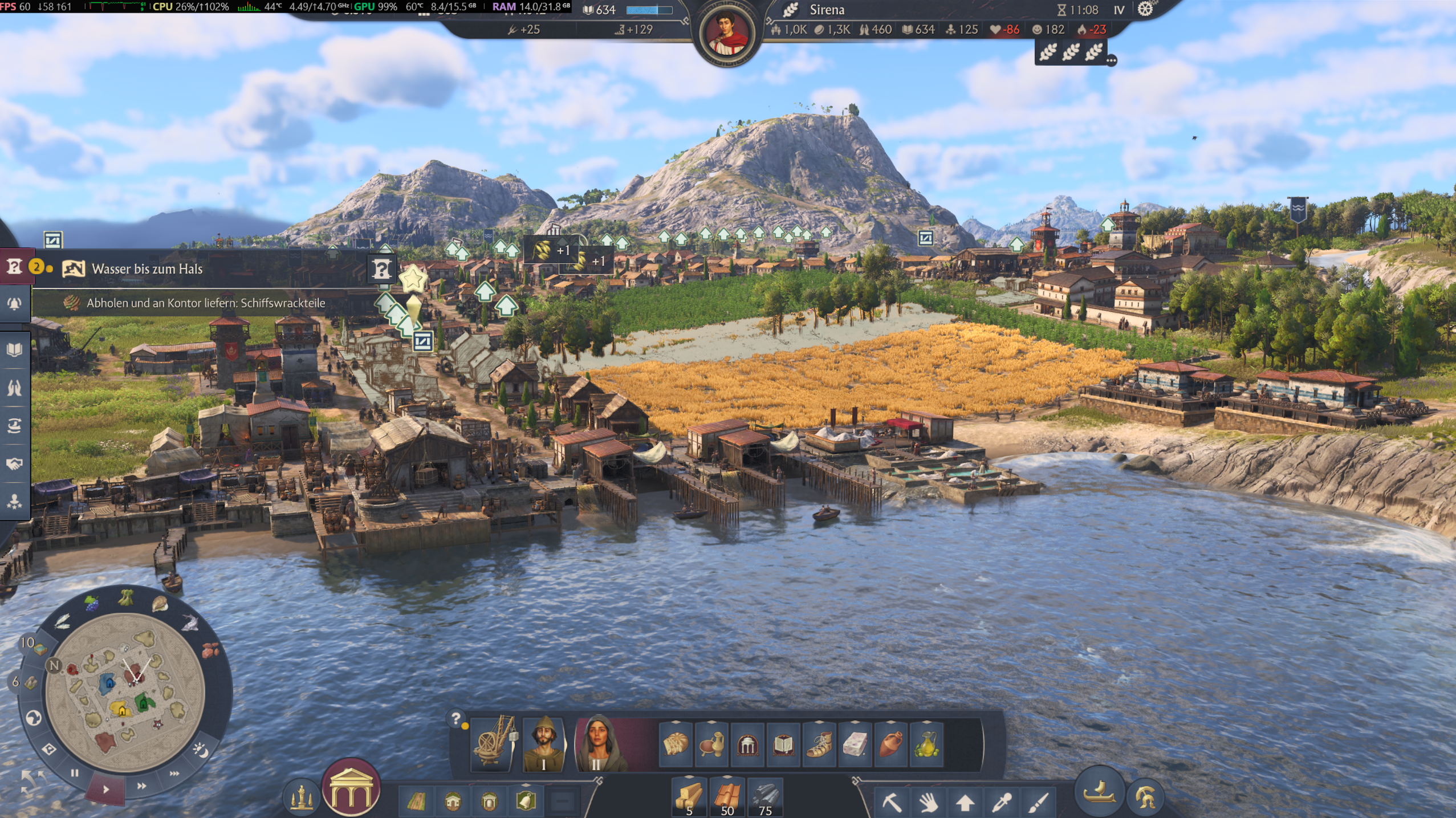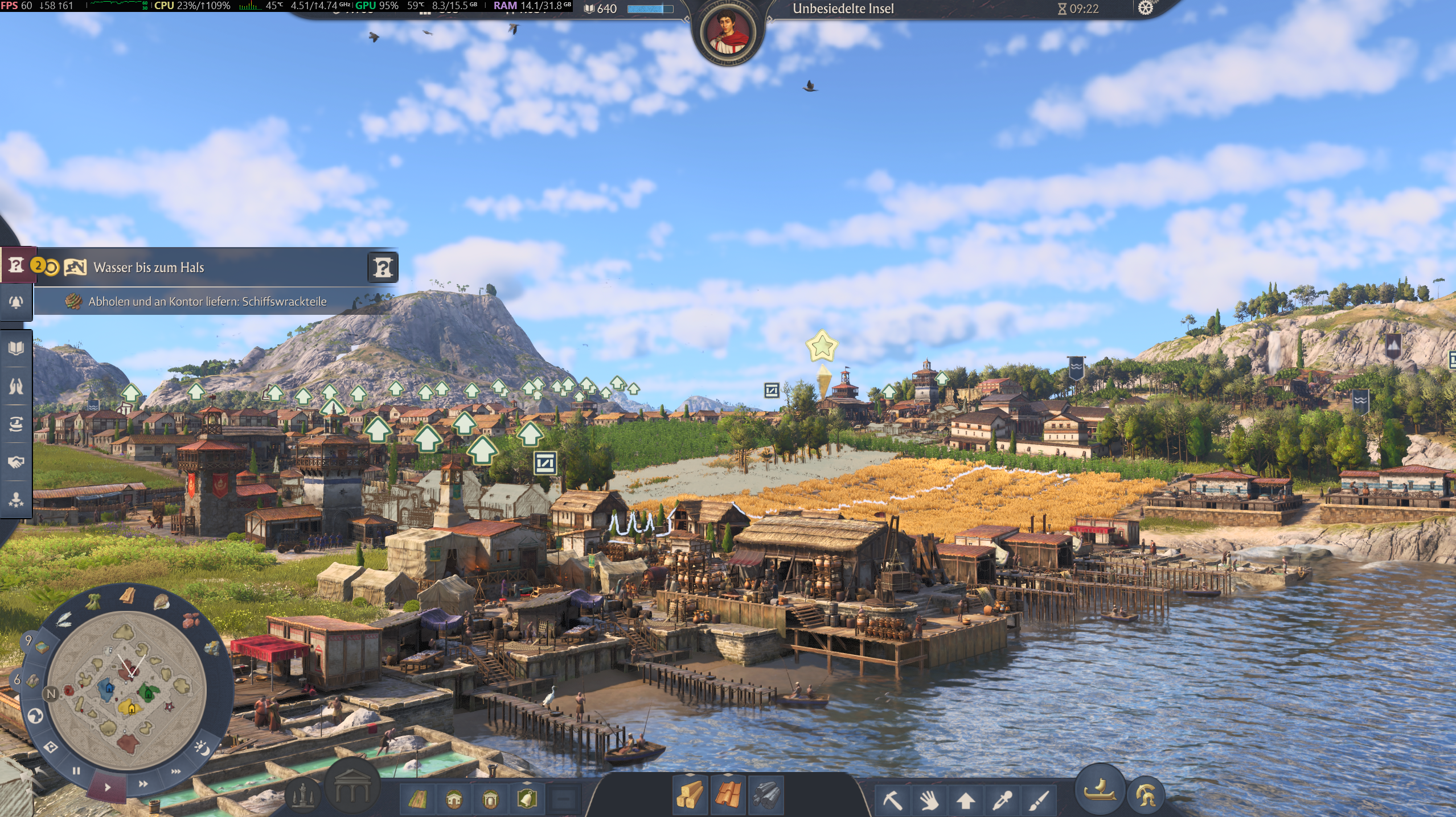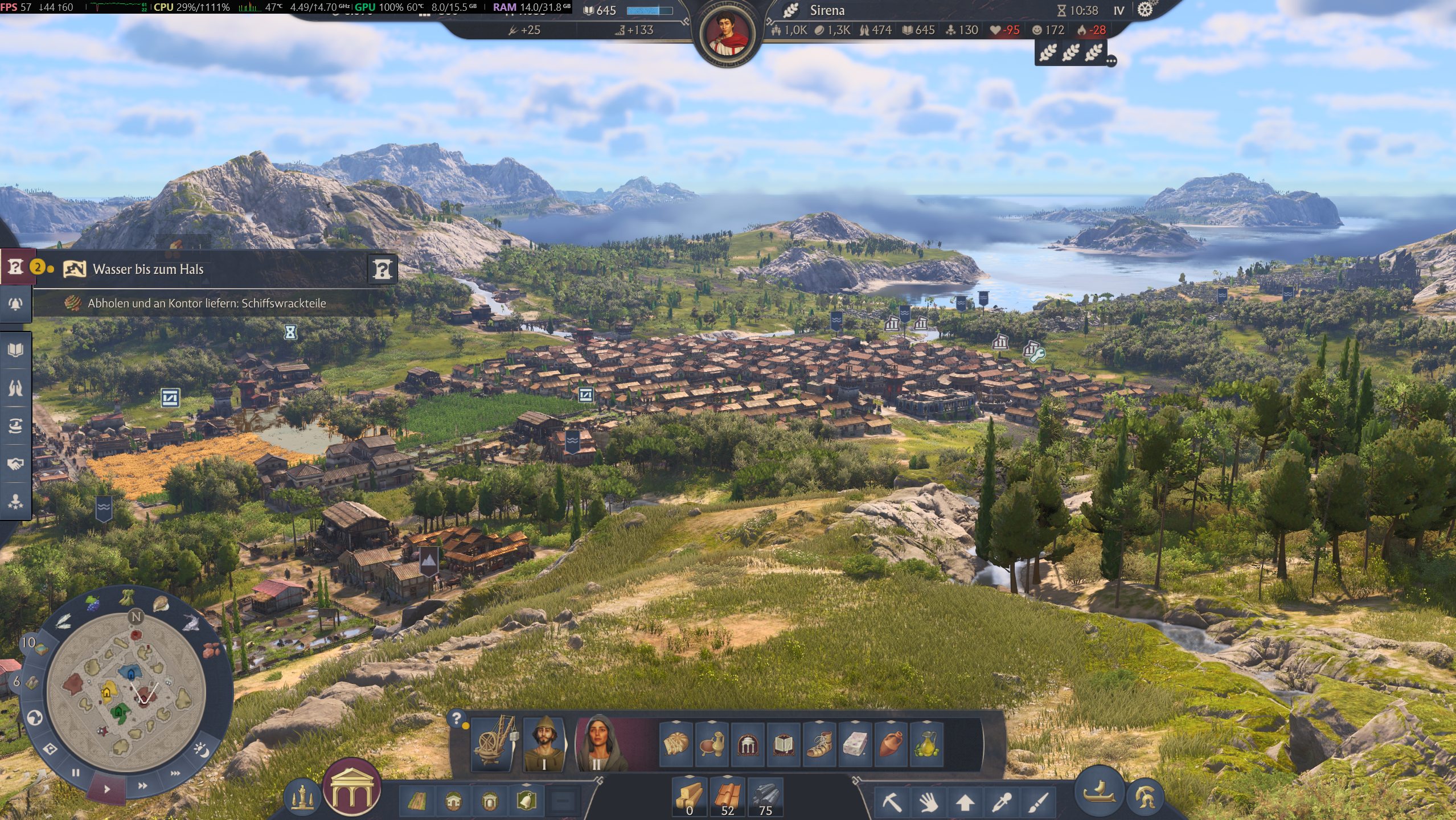 Konkret liefert die Karte zu jederzeit stabile 60 FPS, hier sei angemerkt, dass unsere GPU zu 98 Prozent ausgelastet ist. Wer sich den Spaß macht und sich die anspruchsvollen Systemvoraussetzungen des neuen Anno anschaut, wird feststellen, dass hier eine 4080 oder eine 5070 Ti mindestens vorausgesetzt werden müssen.