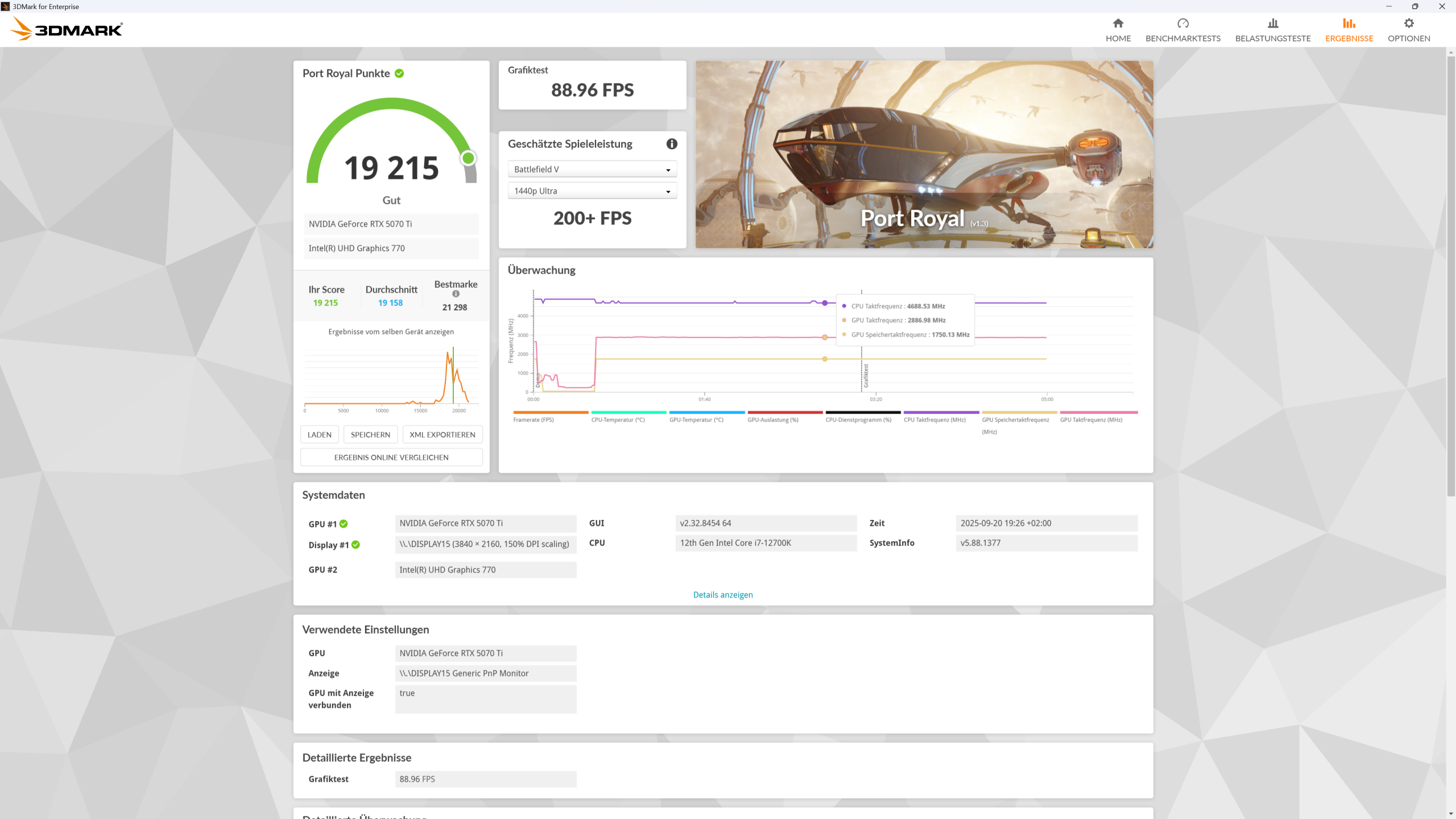Die Hall of Fame Black Edition meistert die Szene mit knapp 89 FPS flüssig und zeigt, wie sich das Dual-BIOS, die optimierte Stromversorgung und das ausgefeilte Kühlkonzept auf die Stabilität unter maximaler Last auswirken. Auch hier liegt unsere Punktzahl mit 19215 Punkten in einem guten Bereich, auch wenn sich hier das OC nicht so sehr auswirkt, wie in TimeSpy.
