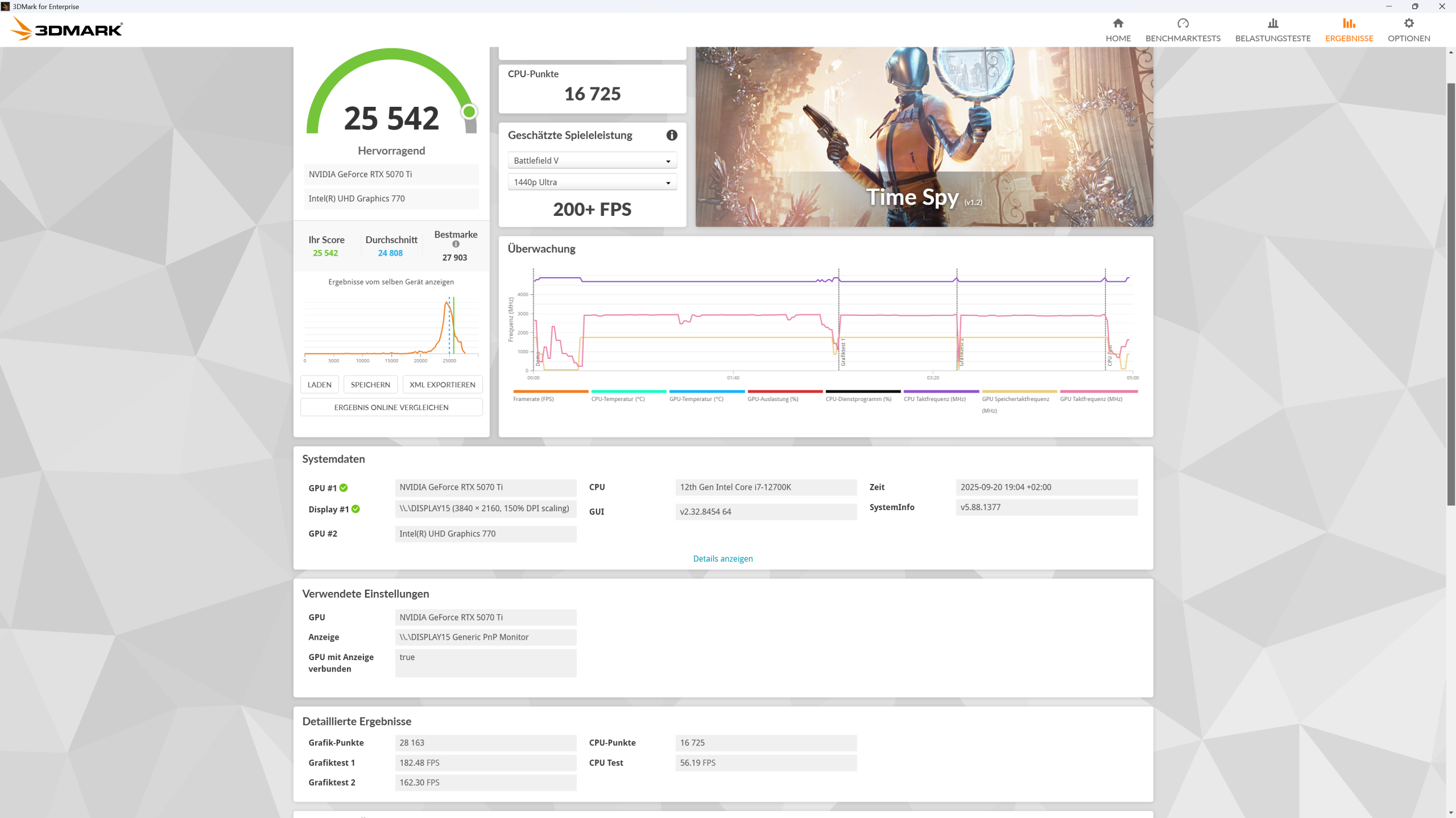 Nichts desto trotz liegen wir in beiden Benchmarks gut über dem Durchschnitt anderer Hersteller von Grafikkarten der 5070 Ti.