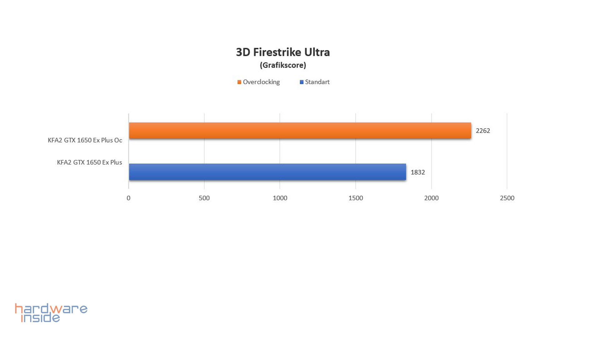 In 3DMark Firestrike Ultra erreicht die KFA2 EX Plus ohne Übertaktung 1832 Punkte und mit Übertaktung 2262 Punkte. Mit Übertaktung erreichen wir circa 23 % mehr Leistung.