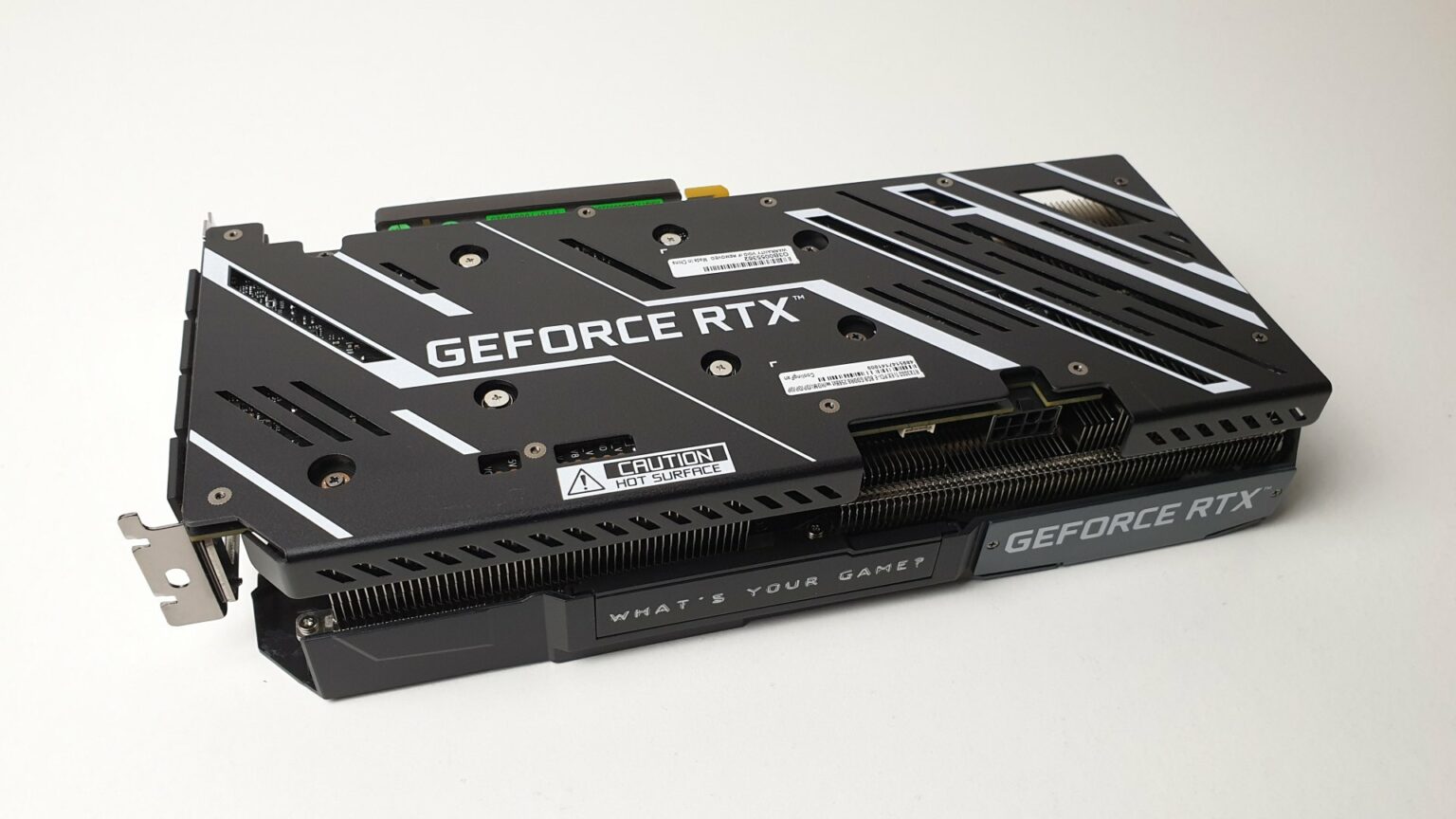 Die erste Grafikkarte die wir uns anschauen, ist die KFA2 RTX 3060 Ti EX. Auf dieser Grafikkarte kommt Nvidia`s GA104 Chip zum Einsatz, welche auch bei den RTX 3070 Grafikkarten verbaut wird. Allerdings hat die GA104 GPU auf der RTX 3060 Ti nur 4864 FPU32-ALUs anstatt 5888 FP32-ALUs wie bei der RTX 3070.