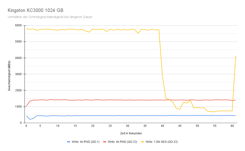 Zusammenfassend kann man sagen, dass die Kingston KC3000 1024 GB etwa ein Drittel ihrer Kapazität im SLC-Modus nutzt und auch nach der SLC-unterstützten Kapazität eine brauchbare Performance zeigt.