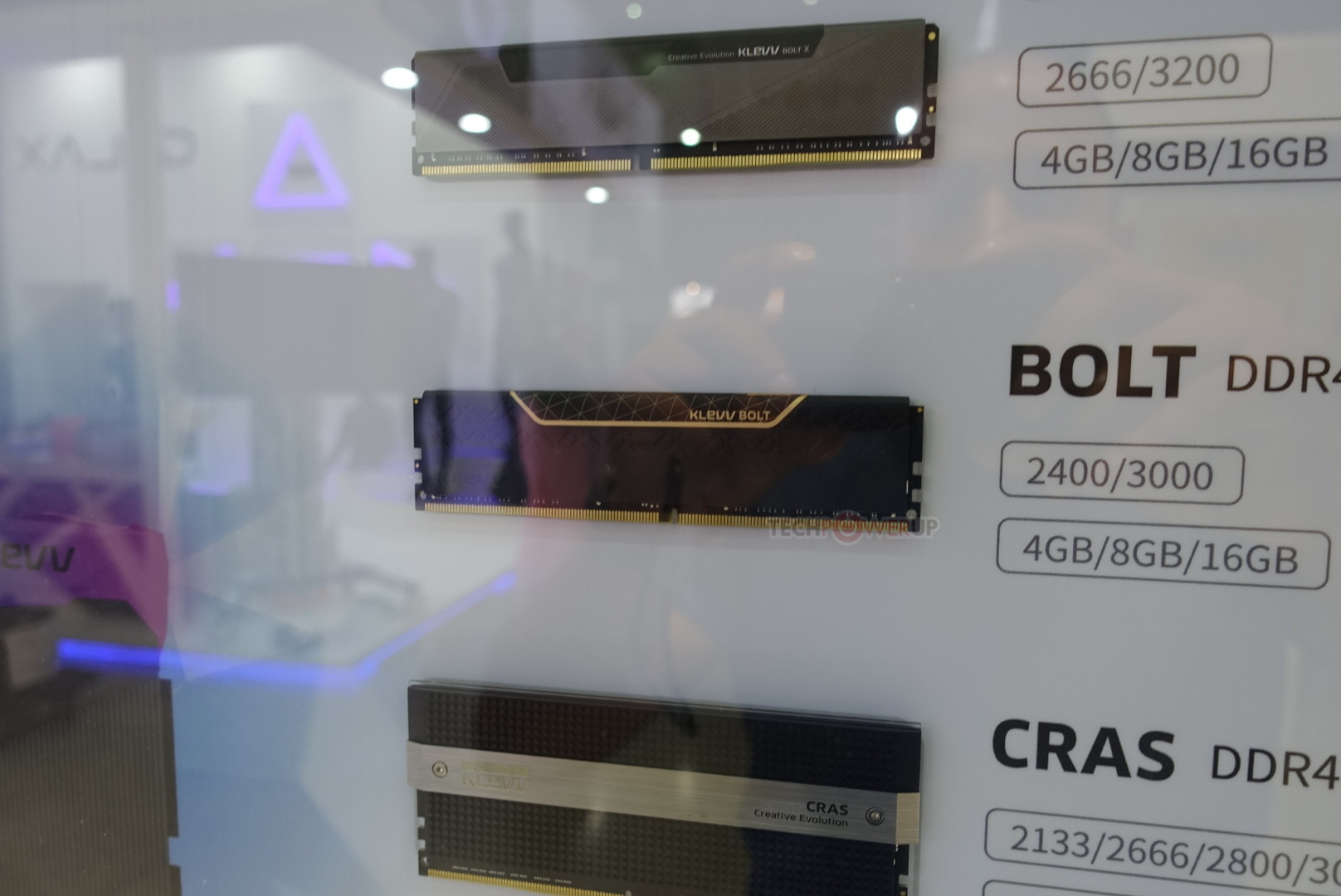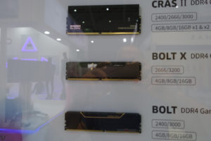 Die Bolt und Bolt X sind die Standardmodule der Firma mit einfacheren Heatspreader-Designs. Der Bolt kommt in DDR4-2400 und DDR4-3000 in 4 GB, 8 GB und 16 GB Riegeln, während der Bolt X mit einem Premium-Design ausgestattet ist und mit DDR4-2666 und DDR4-3200 ausgeliefert wird.