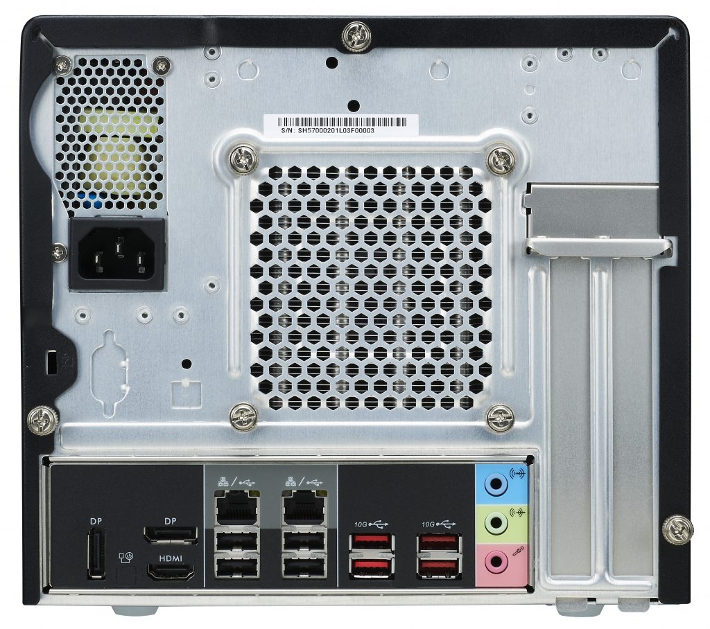 Auf Front- und Rückseite verteilt findet man USB 3.2-Anschlüsse mit 10 Gbit/s Bandbreite, drei 4K-fähige Monitoranschlüsse und – besonders interessant für zentrale Netzwerkanwendungen – zwei Gigabit-Ethernet-Anschlüsse für getrennte Netze, Failover oder Loadbalancing. Zur Erweiterung mit WLAN, eignet sich beispielsweise auch der M.2-2230-Slot auf dem Mainboard.