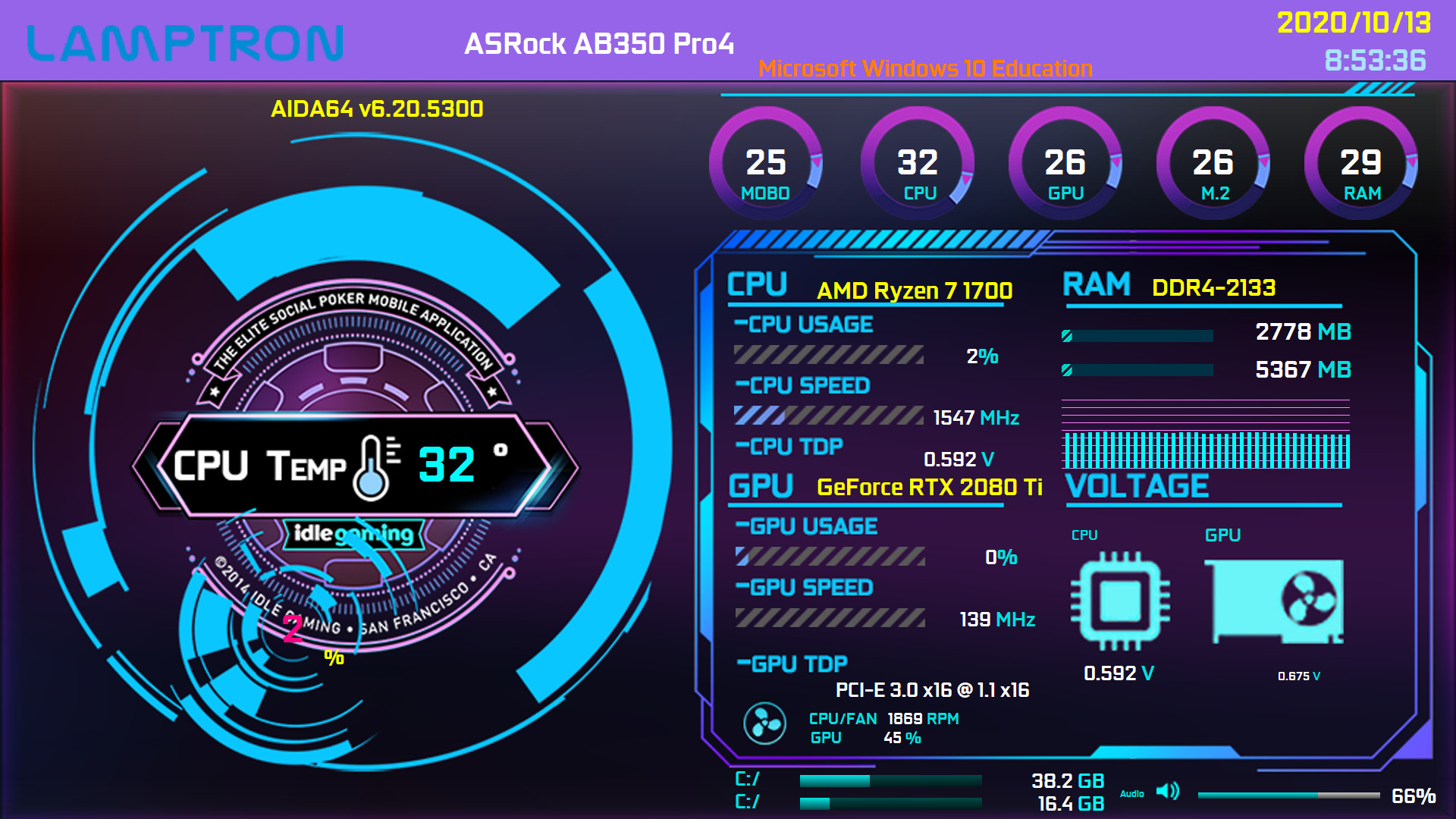LAMPTRON liefert auch einige vorgefertigte Skins auf dem USB-Stick mit. Diese zeigen die relevanten ausgelesenen Werte des Systems an. Designtechnisch ist hier für jeden etwas dabei. Diese lassen sich auch noch verändern bzw. anpassen. Um einen vorgefertigten Skin zu laden, kopieren wir diesen vorher vom USB-Stick auf unsere lokale System-SSD, wird der USB-Stick abgezogen, würde sonst auch der Skin nicht mehr verfügbar sein. Dann „Importieren“ wir diesen einfach – fertig. Einige Beispiele haben wir für euch natürlich auch.