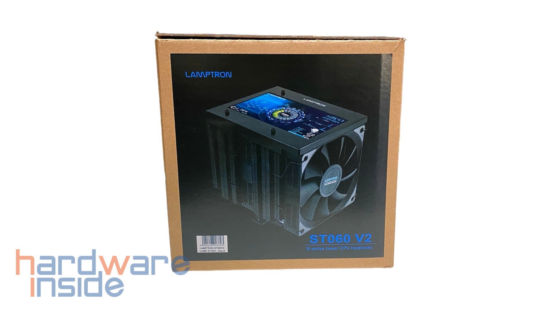 Der LAMPTRON ST060 V2 kommt genau wie sein Vorgänger in einem braunen Karton aus Wellpappe daher. Auf der Front und der Rückseite ist ein großer schwarzer Aufkleber angebracht, der den ST060 V2 zeigt. Neben dem Hersteller-Logo und der Produktbezeichnung in dunkelblauer Schrift, ist noch ein Barcode, der auf das Produkt hinweist, aufgedruckt.