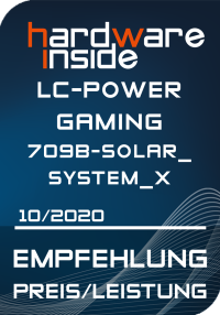 Alles in allem ist das LC-Power Gaming 709B – Solar_System_X Gehäuse sehr zu empfehlen, da es sehr edel und aufgeräumt aussieht. Die mitgelieferten aRGB-Lüfter sind im normalen Drehzahlbereich sehr leise bzw. kaum wahrzunehmen. Die Leuchtkraft ist überzeugend und lässt sich den Wünschen entsprechend anpassen. Eine klare Kaufempfehlung ist hier auszusprechen, denn das LC-Power Gaming 709B – Solar_System_X ist in jeder Hinsicht ein echter Hingucker. Das Preis-/Leistungsverhältnis ist hervorragend. Viel Gehäuse für knapp über 60€. Wir vergeben unsere Preis/Leistungs Empfehlung.
