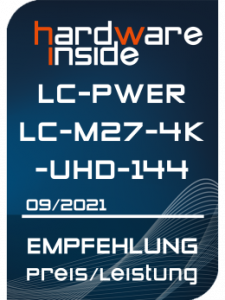 Der LC-Power LC-M27-4K-UHD-144 ist ein absoluter High-End Monitor und sucht in seiner Preisklasse, vergeblich nach Konkurrenz. Monitore mit dieser Ausstattung haben vor nicht allzu langer Zeit noch mehrere tausend Euro gekostet. LC-Power ist für ein sehr gutes Preis-/Leistungsverhältnis bekannt und auch hier hat man den Nagel auf den Kopf getroffen. Der LC-M27-4K-UHD-144 ist mit einem Preis von 650€ und den gebotenen Features, der günstigste Monitor auf dem Markt. Dafür vergeben wir ohne Zweifel, eine Empfehlung mit Preis-/Leistung Award.