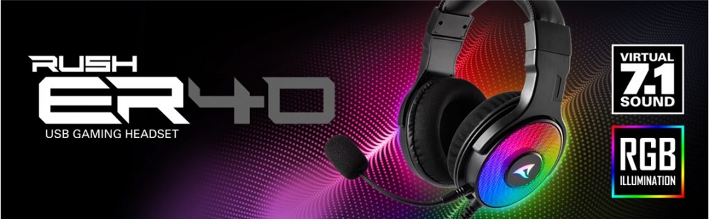 Optisch und technisch reiht sich das ER40 vollkommen in die beliebte RUSH-Serie ein und ist somit rundum auf Gaming ausgelegt. Über das dezente, rundliche Design hinaus setzt Sharkoon jedoch erstmals mit einer RGB-Beleuchtung auf einen wirkungsvollen Eyecatcher mit leicht plastischem 3D-Effekt, der sich zudem in zwei unterschiedlichen Modi betreiben lässt. Ein verstellbares Kopfband und bewegliche Ohrmuscheln sind darauf ausgelegt, auch nach ausgiebigen Gaming-Sessions einen angenehmen Tragekomfort zu bieten. Technisch ist ein 50-Millimeter-Treiber verbaut, der einen gewohnten, druckvollen Klang für immersive Spielsitzungen liefern soll. Der Anschluss per 240 Zentimeter langem USB-Kabel garantiert reichlich Bewegungsfreiheit.