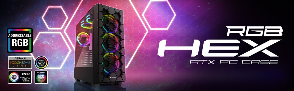 Pohlheim, 23. Februar 2023 – Sharkoon Technologies, global agierender Anbieter für hochwertige und leistungsstarke PC-Komponenten und Peripherie, kündigt mit dem RGB Hex ein airflow-optimiertes ATX-Gehäuse mit namensgebendem 3D-Muster in der Front an. Das optisch auffällige Gehäuse bietet neben einer luftdurchlässigen Frontblende bereits sechs vorinstallierte RGB-LED-Lüfter, die sich vollständig adressieren lassen. Ein Seitenteil aus gehärtetem Glas sowie ein moderner USB-Typ-C-Anschluss an der vorderen Gehäuseoberseite sollen das Gaming-Gehäuse abrunden.