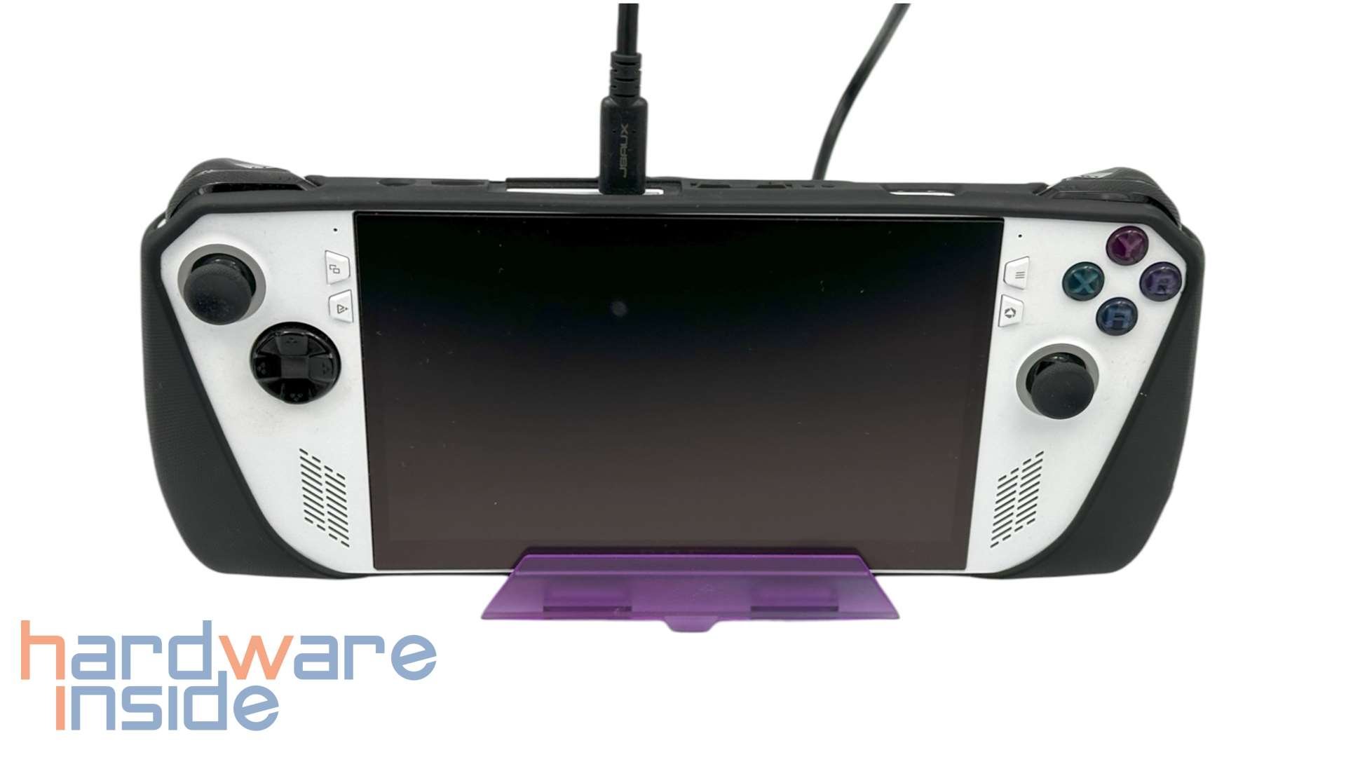 Die Lenovo Legion Glasses sind prädestiniert für den Einsatz an Handhelds. So könnte die Brille zum Beispiel mit der bereits von uns getesteten Lenovo Legion GO oder auch der ASUS ROG ALLY Z1 Extreme genutzt werden. Wir werden die Brille nun an der ALLY Z1 Extreme ausprobieren. Hier nutzen wir den Hub von JSAUX, den wir euch auch bereits gezeigt haben. Zwar könnten wir die Brille auch direkt über den USB-Anschluss des Handhelds nutzen, allerdings würde uns schnell der Akku zuneige gehen. Daher ist der Handheld mit dem Hub verbunden und der Hub mit dem Netzteil und der Brille. So genießen wir nicht nur einen unerschöpflichen Akku, sondern auch den Vorteil, dass der Handheld im Leistungsmodus betrieben werden kann.